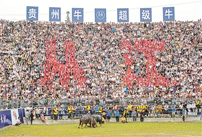 9月20日,貴州省黔東南苗族侗族自治州從江縣丙妹鎮(zhèn)松學(xué)斗牛塘舉行“貴州?!こ壟!眰鹘y(tǒng)斗牛民俗活動,吸引眾多村民和游客前來觀看。斗牛是當(dāng)?shù)孛缍比罕婎H為喜愛的一項(xiàng)民間文娛競技活動。每年秋收結(jié)束至來年春耕前,當(dāng)?shù)孛糠曛苣┒紩e辦斗牛比賽。圖為活動現(xiàn)場。羅京來 攝