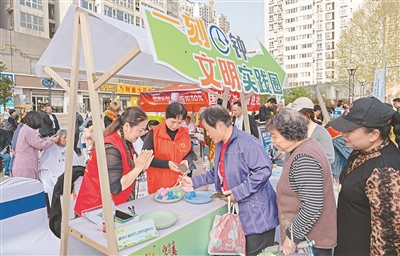 “一刻鐘文明實(shí)踐圈”通過整合文明單位、各類好人、模范、優(yōu)質(zhì)品牌項(xiàng)目等資源,常態(tài)化開展科普、文藝文化、義診義剪、家電維修等惠民活動,同時積極探索“一刻鐘”微宣講、微服務(wù)模式,既讓群眾實(shí)現(xiàn)“出門就能享服務(wù)”,又以“短平快”的方式解決群眾“急難愁盼”小事。柏樹林街道的“犇犇志愿服務(wù)隊(duì)”,幫商戶調(diào)解矛盾、幫老人買菜;張家村街道的“小紅船直播間”,線上收集微心愿、線下解決這些困難。現(xiàn)在,不少居民習(xí)慣了“有事找實(shí)踐站”“有空當(dāng)志愿者”,文明成了大家的生活習(xí)慣。