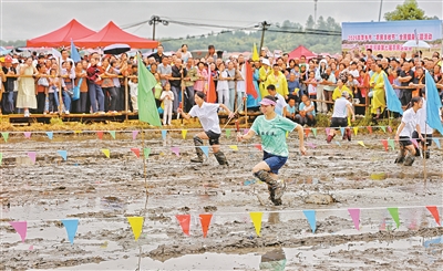 近日,一場別開生面的農(nóng)民趣味運(yùn)動會在江西省蘆溪縣銀河鎮(zhèn)河下村舉行。該鎮(zhèn)14支代表隊的近350名農(nóng)民選手,在旱田拔河、水田接力、小豬趕跑、顆粒歸倉、渾水捉魚等5個取材于農(nóng)村日常生活的趣味運(yùn)動項(xiàng)目中激烈角逐,歡聲笑語里傳遞著豐收的喜悅,呈現(xiàn)了農(nóng)民的幸福生活。鄧建萍 攝