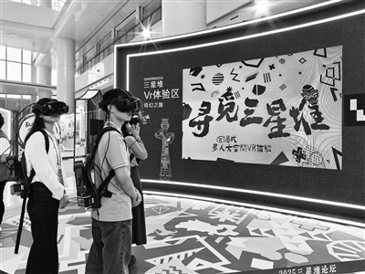 參會嘉賓體驗三星堆VR奇幻之旅。 羅園 攝
