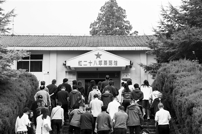 國(guó)慶假期,游客在參觀安徽岳西縣鷂落坪國(guó)家級(jí)自然保護(hù)區(qū)內(nèi)的紅二十八軍舊址群。方好 攝