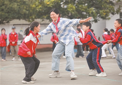 近年來,貴州省黔西市綠化白族彝族鄉(xiāng)培育小學(xué)常態(tài)化開展形式多樣、內(nèi)容豐富的“多彩大課間”活動,結(jié)合學(xué)生興趣與學(xué)校特色推出創(chuàng)新項目,著力打造健康、快樂、充滿活力的校園文化。圖為10月13日,老師帶領(lǐng)學(xué)生們在大課間玩老鷹捉小雞游戲。